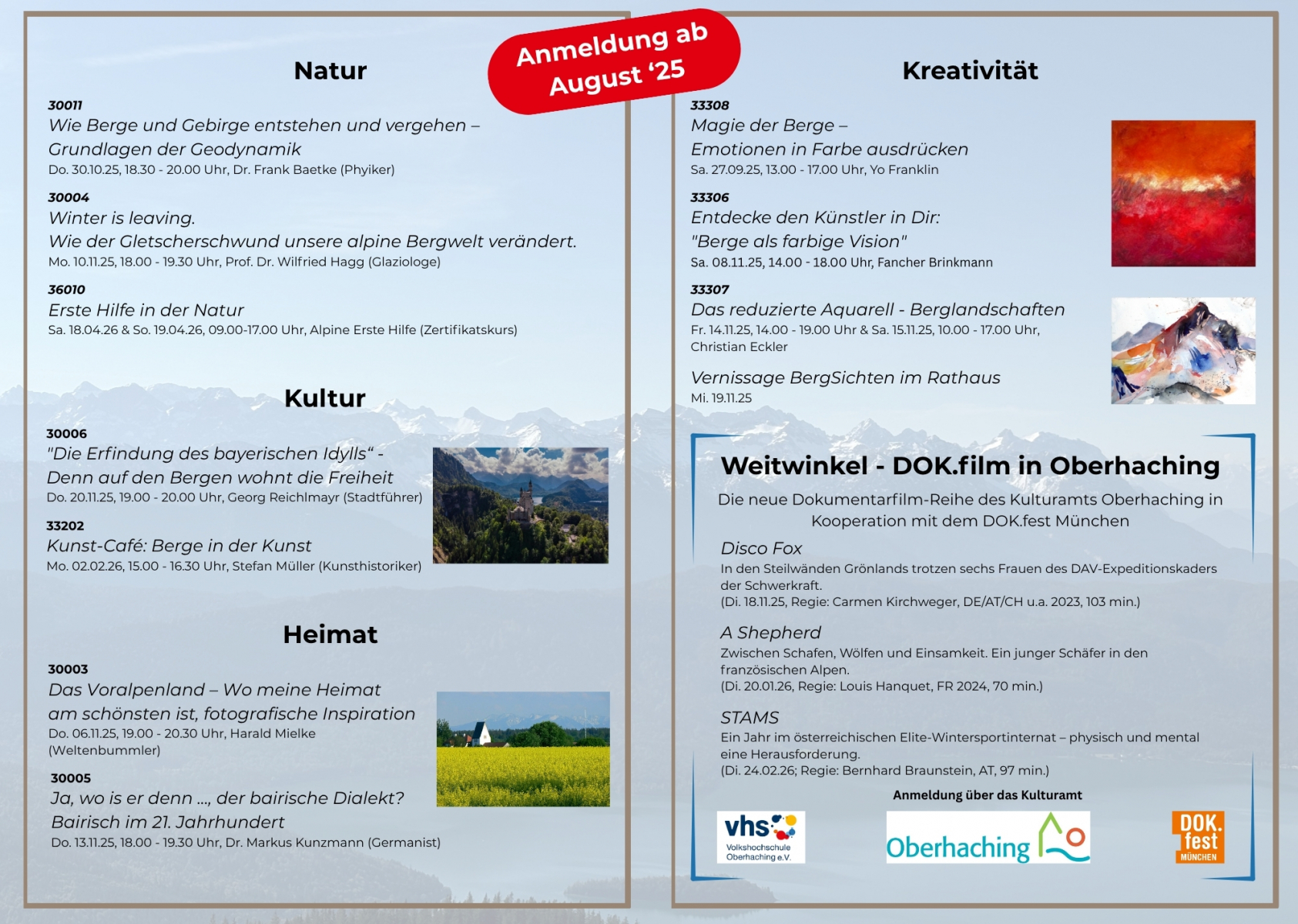 Semesterthema Herbst 2025/26 - Faszination Berge - Natur, Kultur, Freiheit