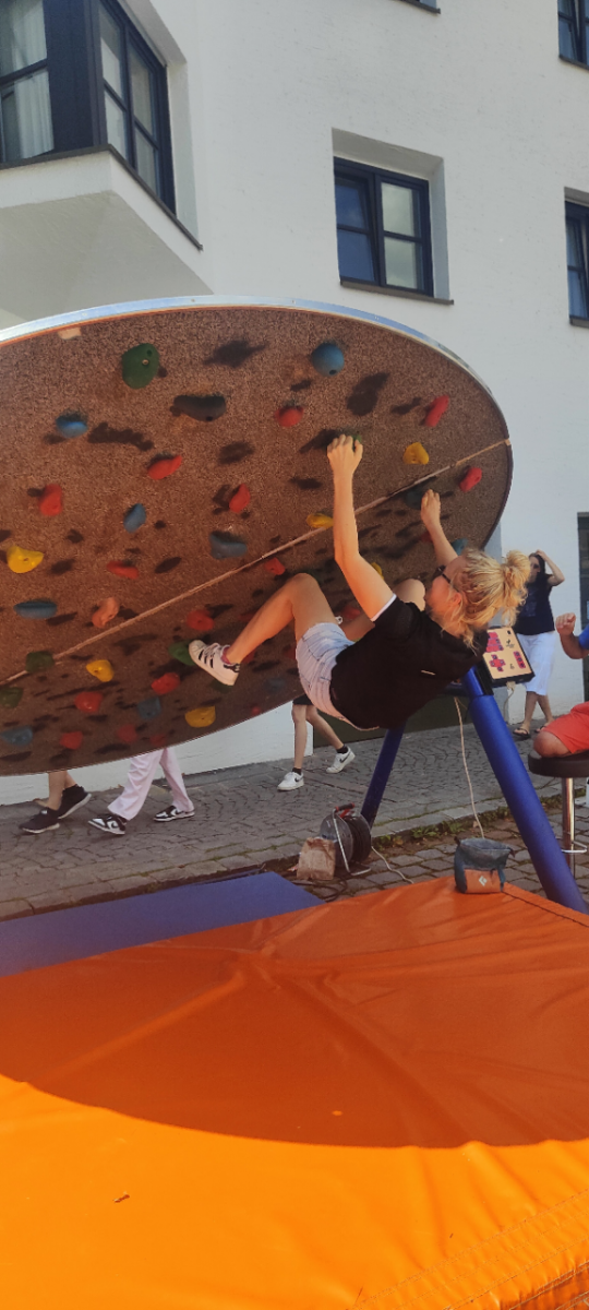Am Sonntag, den 13. Juli war die vhs Oberhaching bei strahlendem Sonneschein und allseits bester Laune wieder mit einem Stand auf dem Oberhachinger Straßenfest vertreten. Gemeinsam mit der Sektion Gleißental des Deutschen Alpenvereins hatten wir dieses Mal ein besonderes Highlight im Gepäck: Eine dreh- und schwenkbare Boulderscheibe, als kleiner Appetizer auf unser kommendes Semesterthema „Faszination Berge – Natur, Kultur, Heimat“ im Herbstsemester 2025/26. Viele kleine aber auch große Gäste und Abenteurer haben den „Boulderkreisel“ ausprobiert und dabei große Freude gehabt. Wir freuen uns auf nächstes Jahr!